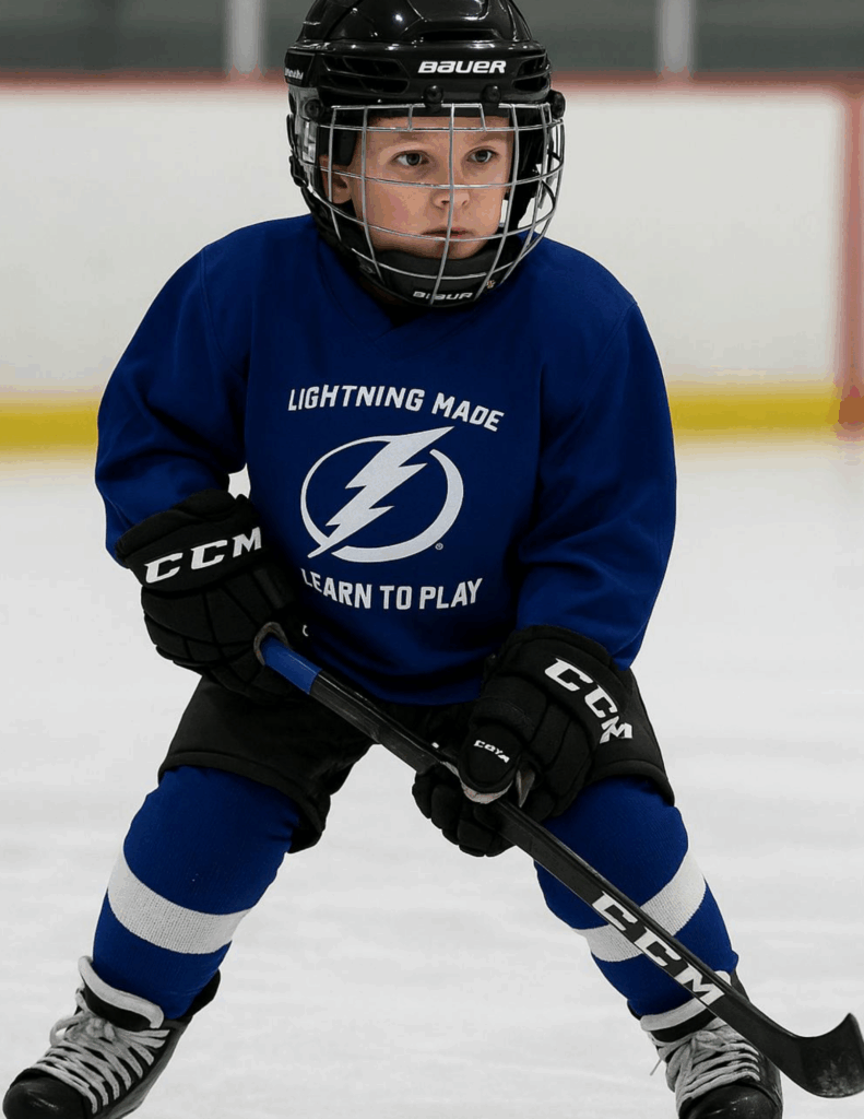 This program provides 8 weeks of introductory hockey lessons for ages 5-10 who have no prior hockey experience. You receive a full bag of hockey protective equipment, skates and instruction for 8 weeks with our USA hockey certified coaches. Children with their own hockey equipment and/or those who play/have played organized hockey in the past are ineligible. Those who have already completed the Lightning Learn to Play/First Steps Program are also ineligible.